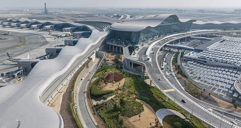 Drawing from Islamic architecture, the terminal boasts the Sana Al Nour art installation, crafted in collaboration with Carpenter | Lowings and the design team. Comprising 1,632 individual curved leaves of translucent glass, this installation channels light and air, enhancing the passenger experience from Departures to Arrivals. The Feature Staircase offers panoramic views and serves as a sculptural centerpiece, emphasizing the terminal’s dedication to design and function.